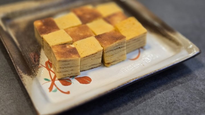 粗熱が取れたら正方形に切り、盛り付けて完成です!